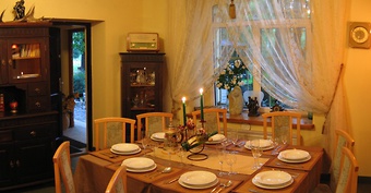 Dębowy Dwór w Świeradowie Zdroju to mały i zabytkowy pensjonat rodzinny z ładnie odrestaurowanymi wygodnymi 15 pokojami ( 1-osobowymi, 2-osobowymi i 2-osobowymi z dostawkami dla dzieci), łazienkami, Telefonem, Tel Sat, Czajnikiem w pokoju. Pensjonat oferuje swoim gościom wyżywienie, pakiety zabiegów kuracyjnych i wellness, saunę, piękny ogród z altanami i grillem, parking, miejsce na narty. Spokojne położenie nad górskim potokiem w otoczeniu natury, w zielonej kuracyjnej części  kurortu, 600 m do nartostrady i kolei gondolowej, ok. 50 m do centrum uzdrowiska, 100 m do lasu, 600 m do przystanku autobusowego, 2500 m do Aquaparku, przy placu mini golfa.  Zapraszamy do nas na wypoczynek.